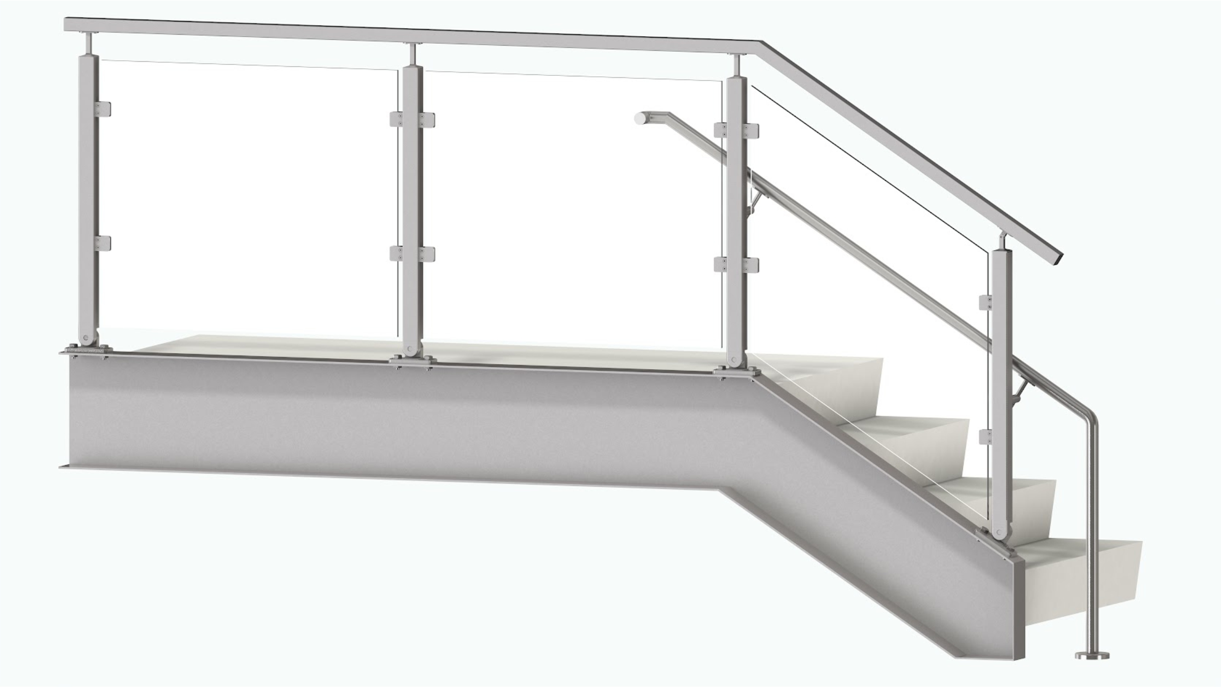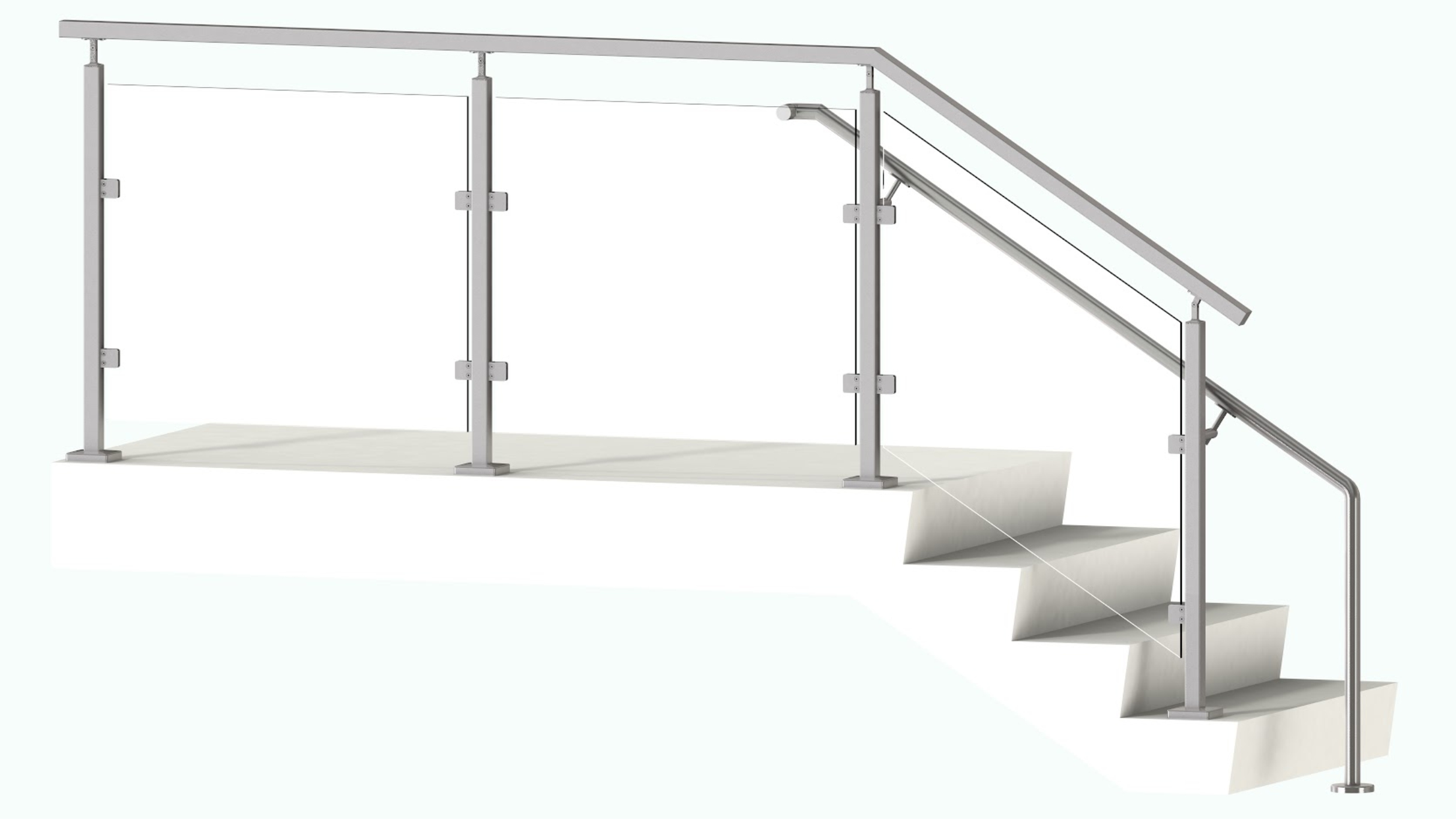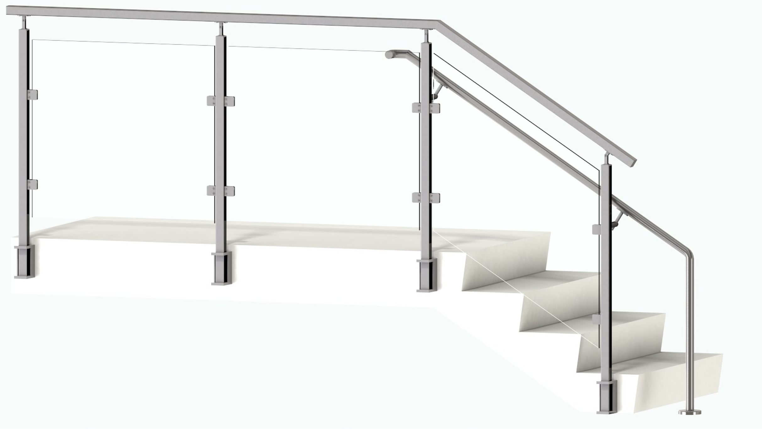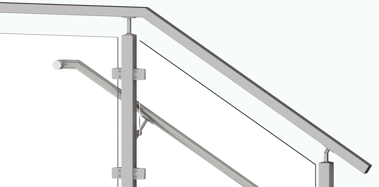 transparent view. The glass clips are attached to the square post, which is mounted on